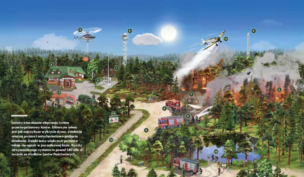 Infografila Lasów Państwowych - System Ochrony Przeciwpożarowej.
