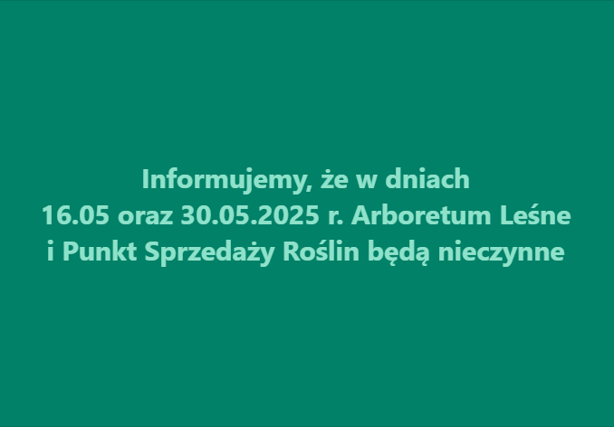 W dniach 16.05.2025 r. oraz 30.05.2025 r. Arboretum Leśne oraz punkt sprzedaży roślin w Nadleśnictwie Syców będą nieczynne.